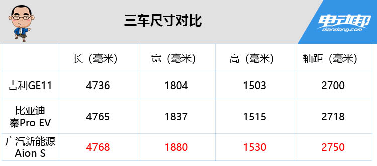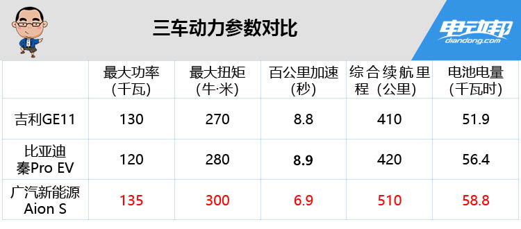 动力方面,Aion S搭载一台永磁同步电机,最大功率135千瓦,最大扭矩300牛·米,百公里加速6.9秒。电池采用三元锂电池,标配液冷温控,电池电量为58.8千瓦时,综合工况续航达到510公里。动力和续航都领先于两款竞品车型。