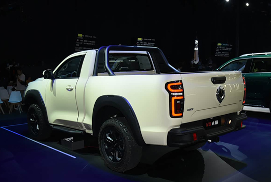 外观方面,新车依旧延续了长城炮车型家族化设计语言,造型粗犷硬派。车头部分,黑色的前包围和格栅在视觉上融为一体,不规则矩形样式的头灯点亮后辨识度很高。