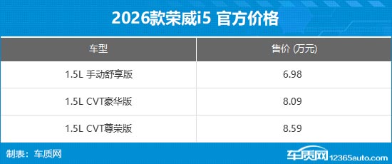 近日,我们从上汽荣威官方获悉,旗下2026款荣威i5已正式上市,新车共推出3款车型,售价区间为6.98-8.59万元。作为年代改款车型,新车主要针对配置方面进行了调整。