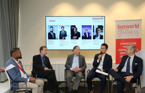 展会期间,苏州金龙副总经理郑春辉受邀参加了比利时世界客车展论坛。作为此次论坛唯一一位中国车企高管,郑春辉与欧洲知名车企Daimler Bus(戴姆勒)、IVECO Europe(依维柯)高管同台对话,分享了他对欧洲公共交通未来发展的见解,并为众多与会嘉宾带去了蕴含东方智慧的“中国解决方案”。他在论坛发言中表示,截至目前,中国已提前完成新能源公交车占比目标。随着电池技术的进一步发展,能量密度更大,重量更轻,完全能够满足城际大巴需求。中国产品已经准备好助推欧洲公共交通市场绿色升级。
