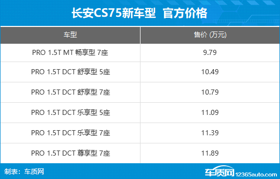 转自 车质网 日前,新款长安CS75PRO正式上市,新车推出6款车型,售价区间9.79-11.89万元,叠加现金补贴及无门槛置换补贴后7.59-9.69万元。新车提供5座和7座布局,动力系统搭载1.5T发动机。
