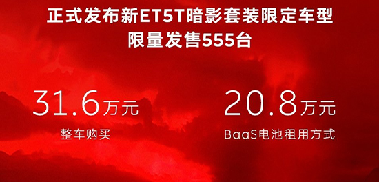 蔚来ET5T暗影套装限定版限量发售555台,作为一款小众定位的限量版车型,其最大的意义就是能够为用户带来不一样的感受。不可否认,专属的车身拉花、个性的主题套件以及强劲的动力表现,对于年轻人来说确实极具吸引力。