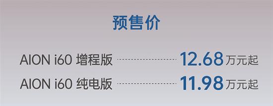 11月3日,AION i60正式开启预售,新车推出增程版和纯电版可选,预售价分别为12.68万元起和11.98万元起。预售权益是99元订金,享价值超6660元三重好礼,包括定制礼、养护礼以及升舱礼。