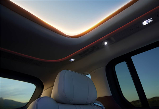 科技配置方面,“穹顶星轨氛围灯”与AI航空阅读灯联动,营造出“移动星空舱”的沉浸式体验。细节处,“星舰领航”方向盘与“水滴涟漪”扬声器的命名,赋予设计诗意美感。二排作为核心舒适区,配备支持零重力模式与按摩功能的独立座椅,搭配车载冷暖箱与双50W无线快充,兼顾舒适与实用。