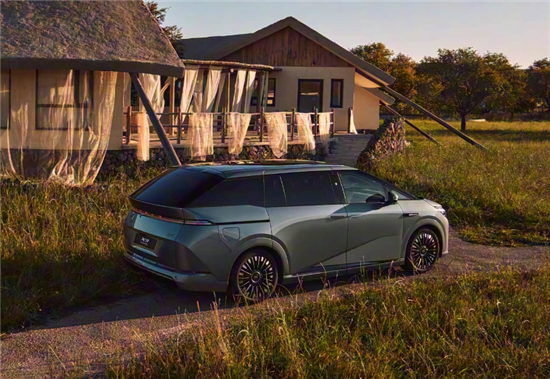小鹏X9增程版与纯电版保持高度一致的家族化风格,仅在细节处进行差异化调整以适配增程动力属性。配色方面,小鹏X9新增了名为“极光青”的外观颜色,带来了更具个性化的外观颜色选择。车辆尾部采用了大尺寸的无边界后窗玻璃,使其具有更强的科技感。