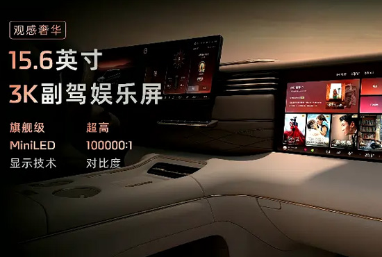 车内造型强调舒适性和豪华感,27.1英寸中控屏和15.6英寸副驾屏显示清晰,车机内置高通骁龙8295P芯片,智能交互表现出众。