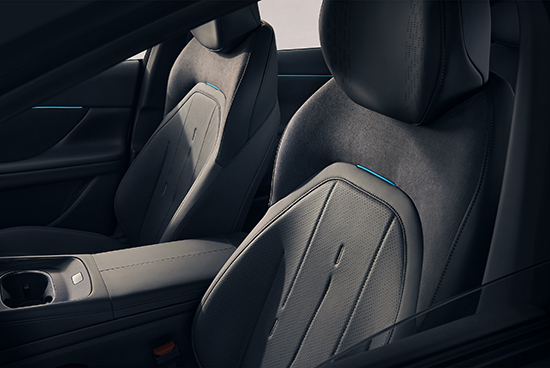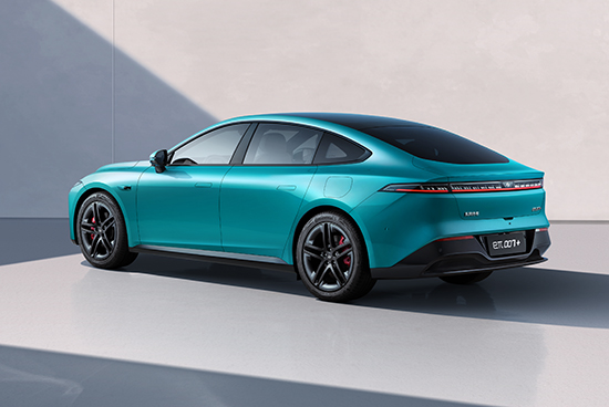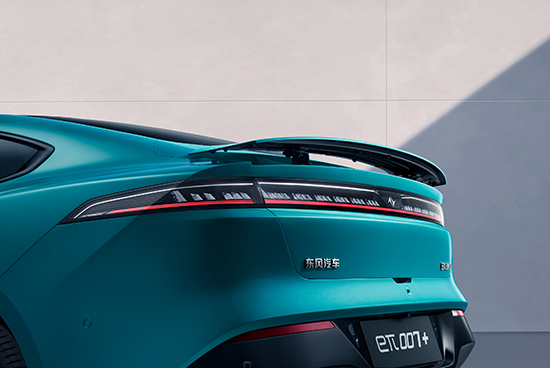 车尾全系标配随速升降电动尾翼,高速行驶可增强车身稳定性,兼具仪式感与实用性。电动掀背尾门设计,让后备厢取用物品更便捷。尾部右下角增加了全新“eπ007+”品牌字标。另外,新车增加了苍穹灰和港湾蓝两款外观配色。