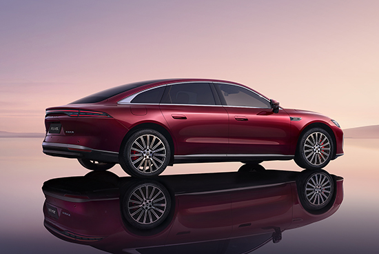 车身侧面线条简洁利落,隐藏式车门把手等细节不仅优化了视觉整体性,更助力整车风阻系数低至0.23Cd,兼顾美学与效能。车尾部分,贯穿式尾灯组成为视觉焦点,搭配镀铬装饰的后包围,与车头设计语言巧妙统一,在简约中勾勒出恰到好处的质感与辨识度。