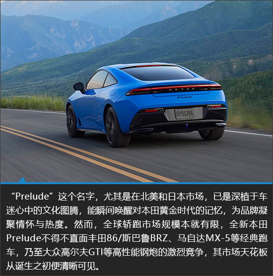 全新本田Prelude的回归,不仅是经典双门跑车血脉的延续,更是本田运动精神的当代诠释。它将品牌核心的驾驶乐趣与混动技术相结合,打造出一款面向未来的“乐趣导向型”产品。这款车象征着本田在电动化时代对运动基因与驾驶乐趣的坚守,有望为品牌注入新的活力,并再次点燃车迷的热情。
