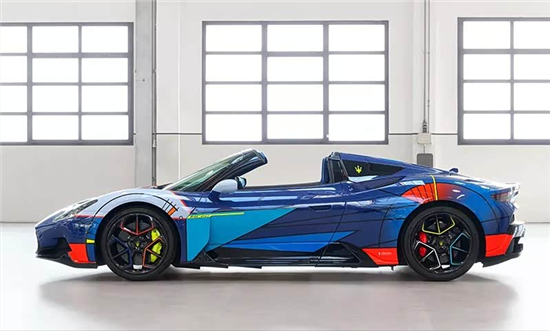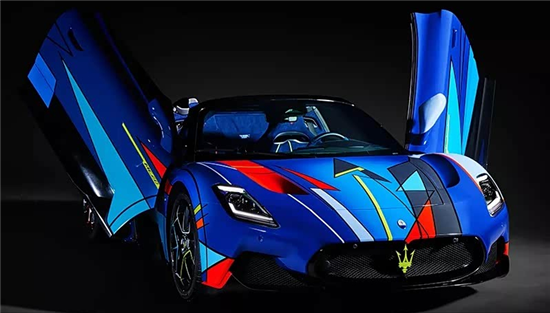 外观部分,新车基于玛莎拉蒂MC20敞篷版打造而来,整体造型基本没有变化,主要区别是个性化涂装,汲取了抽象艺术语言,以突破性视角重构超跑美学。