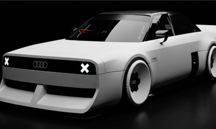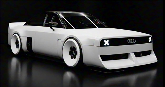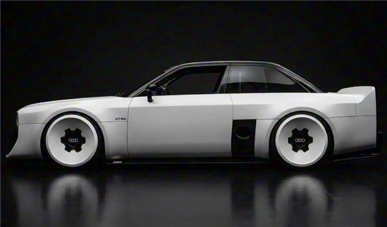 外观设计上,奥迪GT50概念车尽显复古韵味,车身线条棱角分明,车灯与前格栅的设计复刻了品牌经典元素,同时融入现代简化设计语言,兼具复古情怀与时尚质感。夸张的前后包围及专属轮毂,进一步凸显其赛车基因。