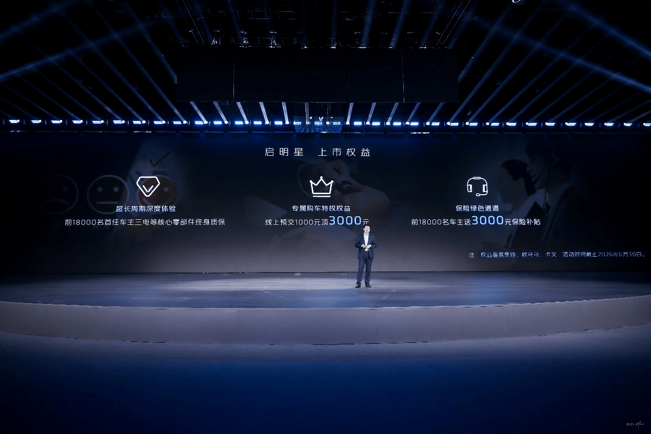 生态服务方面,启明星构建全场景增值服务生态体系,精准匹配不同客户需求:针对组织客户,推出含8年/80万公里精养、智检、一站式托管维修的整车打包服务;针对个人客户,提供灵活的单项或套餐服务,会员享专属折扣,实现省心省钱。金融保险方面,联合京东安联、平安等头部险企稳定承保;同时布局租赁、品牌认证二手车等创新业务,升级智福管车系统,搭建完善的二手车平台生态。数智层面,搭载高算力平台化T-BOX,智能车机全系标配,实现全域远程OTA;补能方面,完善经销商新能源运营生态,让用户更便捷。