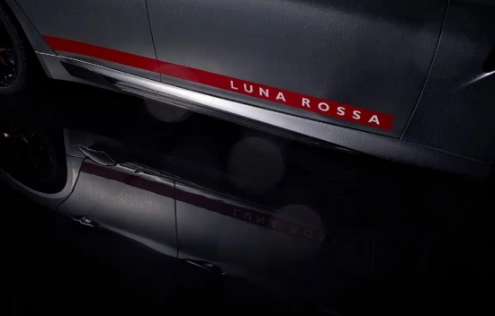 从发布的官图来看,新车采用手工绘制的iridescent金属漆,车身随光线变化呈现珍珠母贝般的虹彩光泽,搭配侧裙红色拉花与“Luna Rossa”标识,营造出强烈的动态感。同时,19英寸轮毂采用红色点缀,与红色刹车卡钳形成鲜明对比。值得一提的是,该车车标也是品牌历史上首次采用红色作为底色。