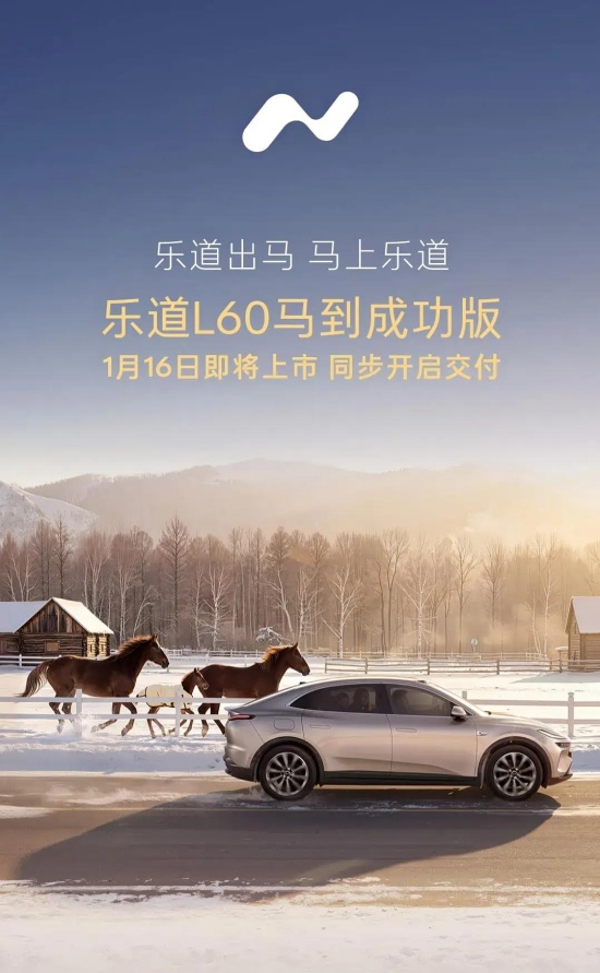 日前,乐道汽车发布了旗下中型SUV——乐道L60马到成功版车型官图。据悉,新车将于1月16日正式上市并同步启动交付。