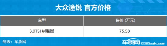 日前,我们从大众汽车官方获悉,途锐3.0TSI锐臻版正式上市,官方指导价为75.58万元。作为途锐系列的“最终版”车型之一,新车采用了黑化风格的R-Line外观套件,整体视觉效果更具运动感。