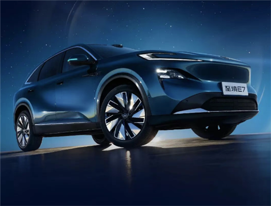 至境E7延续至境SUV概念车“展翼元素”设计理念,车身比例修长、体量饱满,轻盈凌厉线条搭配分体式灯组设计,勾勒出驭风鲨鱼前脸造型,分体式星河展翼大灯也很有辨识度。