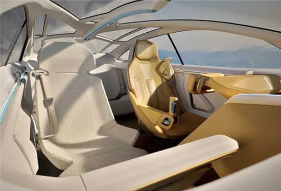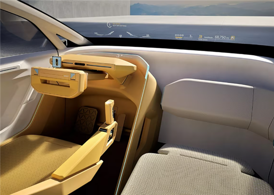 此外,车内配备类似驾驶模拟器的方向盘与控制手柄,方向盘上方设有小型屏幕,主驾席前方则配备环抱式仪表显示与面部监测系统,全方位提升驾驶的便捷性与安全性。