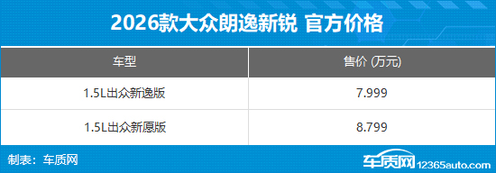 日前,2026款上汽大众朗逸新锐已正式上市。新车此次共推出2款车型,分别为1.5L出众新逸版与1.5L出众新愿版,官方售价区间为7.999-8.799万元,相较老款车型保持价格稳定,主要变化在于取消了后备厢备胎配置。