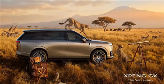 外观上,小鹏GX采用长轴距、长后悬与悬浮式车顶设计,营造出修长优雅的车身姿态。车头简约大气,蚌型前盖搭配贯穿式日行灯、分体式车灯,大面积留白尽显豪华感;金色车漆质感出众,隐藏式门把手提升了侧面的流畅度;尾部延续极简风格,贯穿式尾灯吸睛,疑似配备与揽胜同款的天地门设计。车顶的全景天幕,进一步强化了驾乘的通透感。