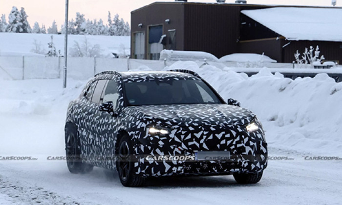 本次曝光的谍照拍摄于瑞典北部,新车已褪去此前原型车较为厚重的方正伪装,引擎盖流畅的曲线造型清晰可见,并换装了接近量产状态的大灯组。尽管定位于SUV车型,但其车身比例更偏向流线型的性能跨界车,而非传统硬派越野车的方正造型。整车姿态宽大低矮,车顶线条流畅下压,整体设计以性能取向为核心。