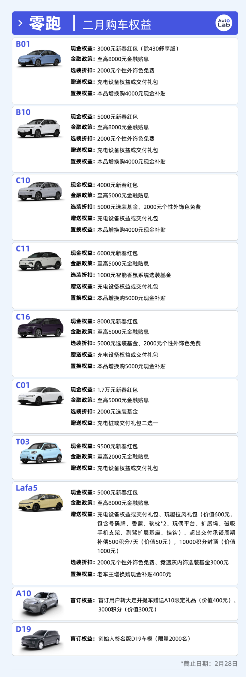 零跑在本月则是将上月的购置税补贴转化为了“新春红包”。