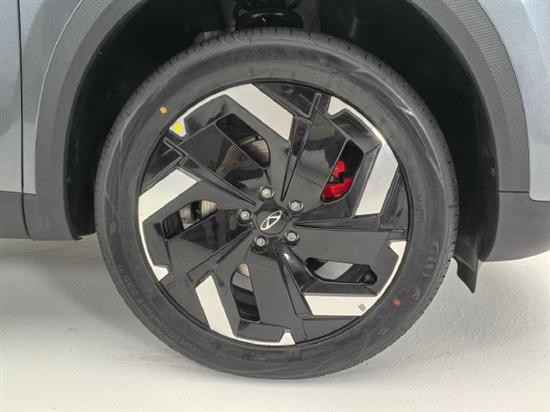 别看是一台燃油车,但是在侧面的设计上,也是借鉴了很多新能源车型的设计语言,就比如19英寸的轮毂,居然加入了低风阻的设计理念,配合上双拼的配色以及旋风式的造型,确实还是很耐看的。而刹车部分则是采用了年轻人非常喜欢的红色卡钳,确实在颜值方面是无可挑剔的。