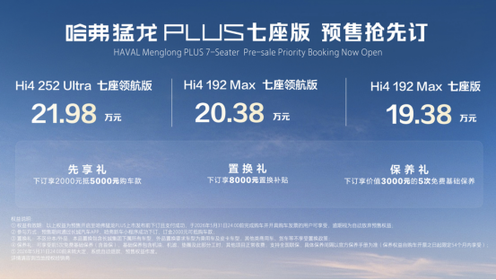 哈弗猛龙PLUS Hi4 192 Max 七座版 19.38万元